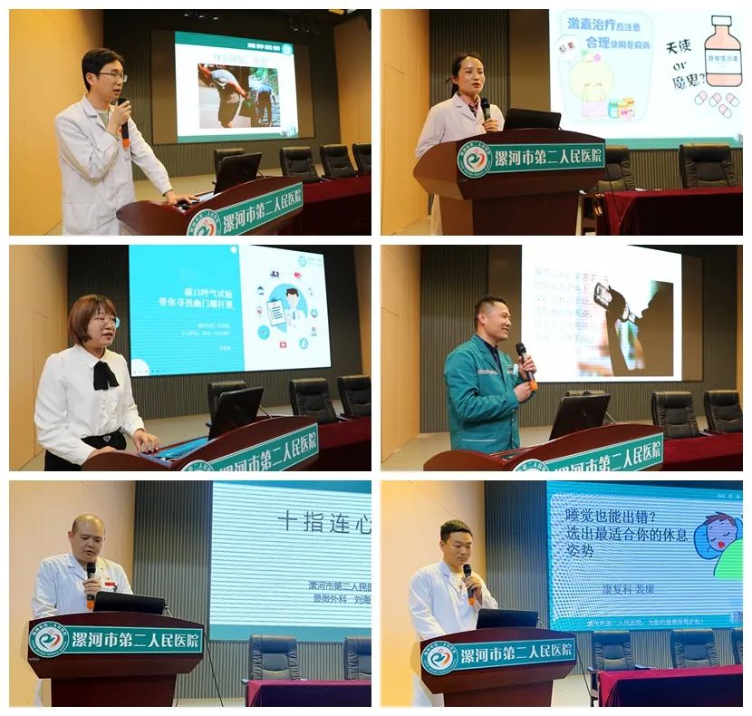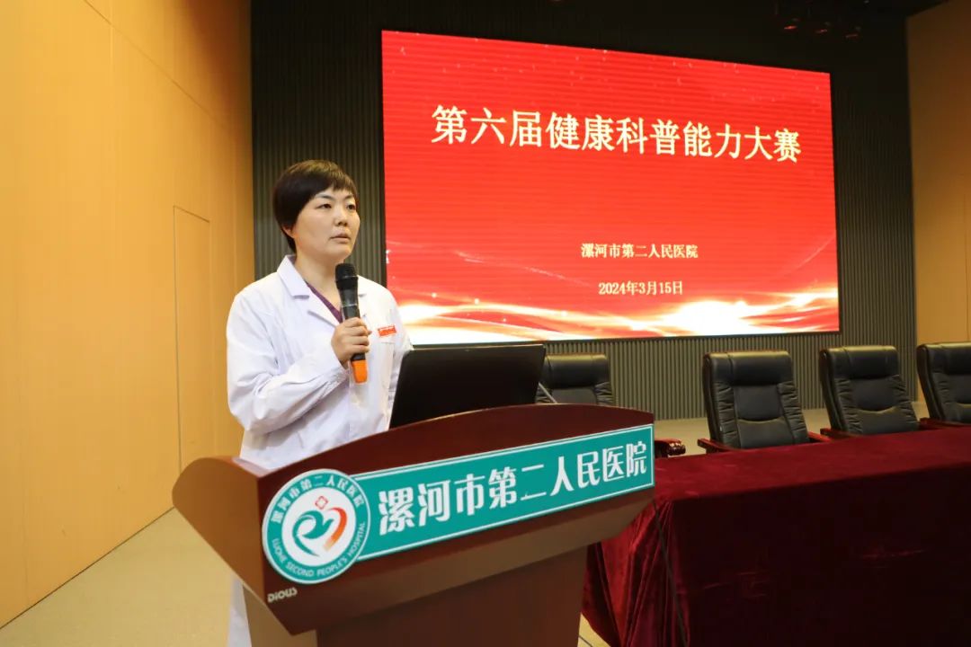 為進(jìn)一步提升醫(yī)務(wù)工作者的健康科普能力,加強醫(yī)務(wù)工作者對健康工作方式的思考和拓展,營造全民關(guān)注健康科普的良好氛圍,助力健康漯河建設(shè),3月15日下午,按照院黨委工作安排,市二院在12樓學(xué)術(shù)報告廳舉辦了第六屆健康科普能力大賽。院長王瑾,副院長郭長根、紀(jì)委書記孟德陽、工會主席李世學(xué)出席比賽現(xiàn)場,部分職能科長、科室主任、護士長和不值班醫(yī)護人員代表150余人參會。