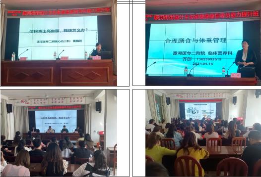 為提高居民對健康問題的重視程度,增強自我保健意識,應(yīng)源匯區(qū)衛(wèi)健委領(lǐng)導(dǎo)邀請,4月18日下午,漯河市骨科醫(yī)院(漯河醫(yī)專二附院、漯河市立醫(yī)院)組織心內(nèi)二科董艷彩主任、社會工作部韓書環(huán)主任、營養(yǎng)科齊彤主任等醫(yī)療專家到源匯區(qū)順河街街道建西社區(qū)為源匯區(qū)衛(wèi)健委計生協(xié)家庭健康指導(dǎo)員、順河街道辦事處工作人員、建西社區(qū)居民等開展健康知識講座。
