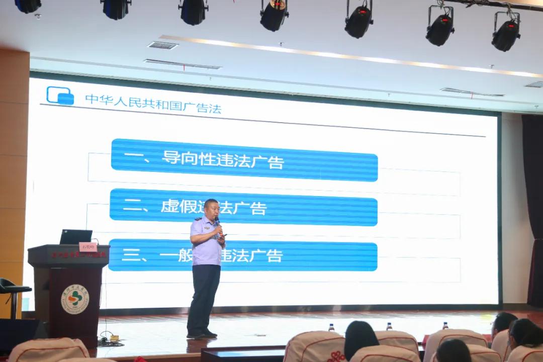 在隨后的授課過程中,石俊峰科長圍繞醫(yī)療廣告的特征形式、禁區(qū)紅線、處罰標準、質(zhì)量提升、案例解讀等五個方面,對《廣告法》《醫(yī)療廣告管理辦法》等與醫(yī)療廣告相關(guān)的法律法規(guī),以及廣告用語規(guī)范、內(nèi)部審查要求、案例分析等進行了詳細講解。既有理論深度,又通過大量詳實的案例分享寶貴經(jīng)驗,使大家受益匪淺。石俊峰提出,作為醫(yī)院通訊員,應充分認識醫(yī)院宣傳工作的重要性,既加強宣傳力度,又把握宣傳尺度,加強學習,夯實本領(lǐng),不斷提高自身的宣傳能力與水平。