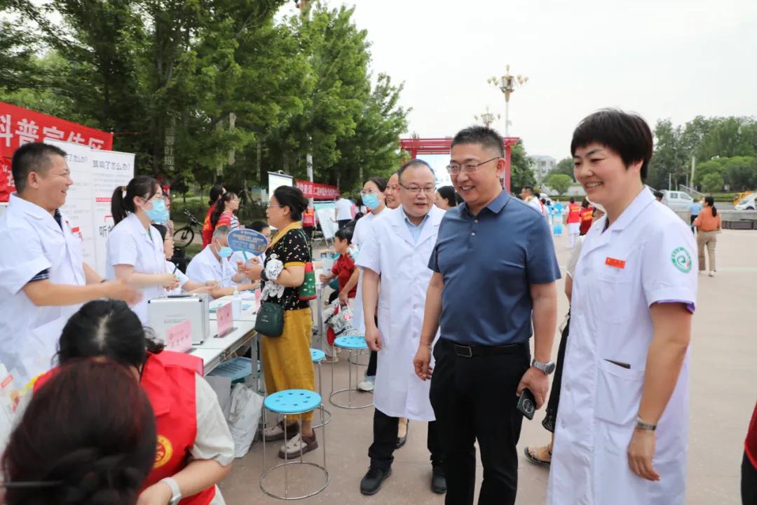 5月31日晚7時,根據(jù)市衛(wèi)健委統(tǒng)一部署,市二院在紅楓廣場開展了“漯河市衛(wèi)生健康青年人才發(fā)展聯(lián)盟大型義診活動”,在炎炎夏日為廣大市民送去陣陣清涼。市衛(wèi)健委黨組副書記、副主任王向良帶領(lǐng)市衛(wèi)健委人事科科長王滿華、醫(yī)政科長王彩紅等蒞臨現(xiàn)場并給予指導(dǎo)。