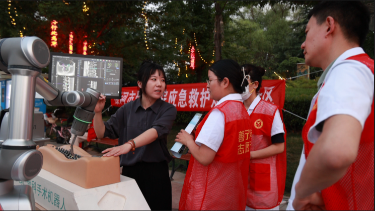 除了提供義診服務外,醫(yī)療專家志愿者們還進行了“天璣Ⅱ”骨科機器人展示,向市民介紹了該機器人在數(shù)字智能醫(yī)療領域的應用、技術特點、臨床優(yōu)勢以及實際案例等方面內容,將優(yōu)質的醫(yī)療資源和先進的醫(yī)療技術帶到基層老百姓身邊。