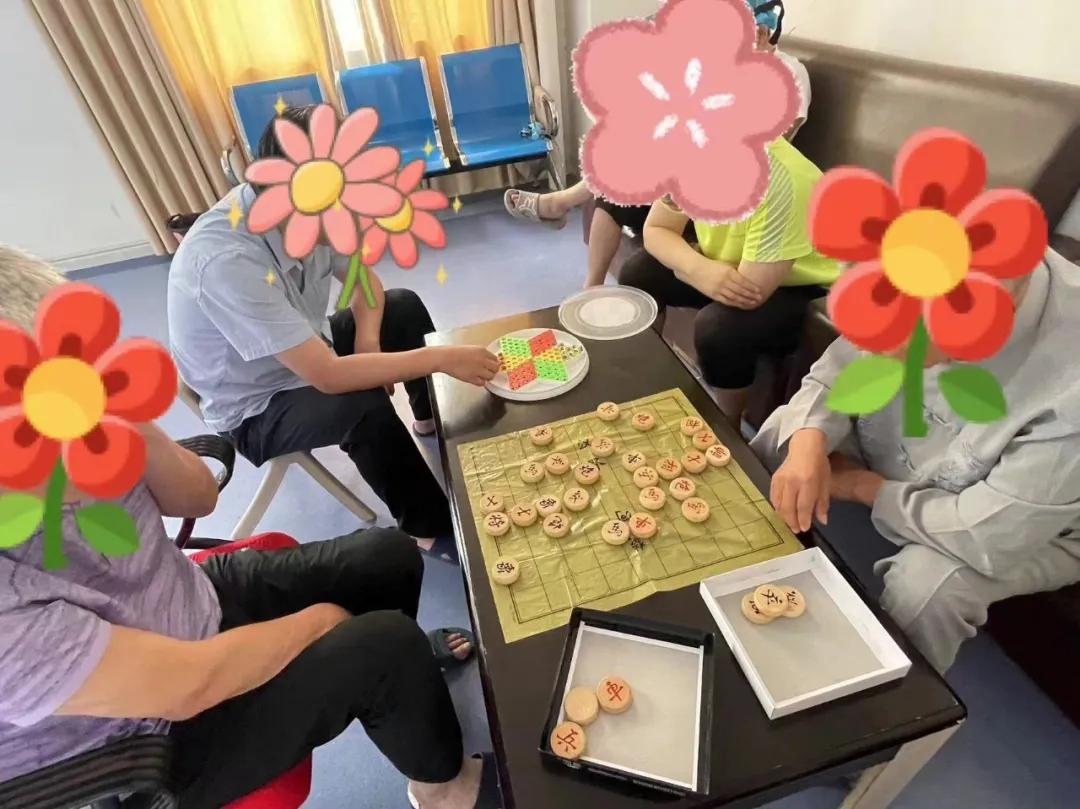 走進活動室我們首先看到的是有的患者手中拿著筆,在信紙上認(rèn)真地傾訴著自己的內(nèi)心世界,意為發(fā)泄,也是與自己的一次和解。有的患者則在醫(yī)務(wù)人員的指導(dǎo)下,制作手工藝品,從一開始的笨拙生疏,到漸漸的熟練流暢,他們的作品從無到有,從簡到繁,無不展現(xiàn)出獨特的創(chuàng)意和個性。更有兩兩對坐的患者在棋局上戰(zhàn)得酣暢淋漓,快意人生。對于愛運動的患者,我們工娛護士則跟著視頻課程帶領(lǐng)大家揮灑汗水,恣意瀟灑。