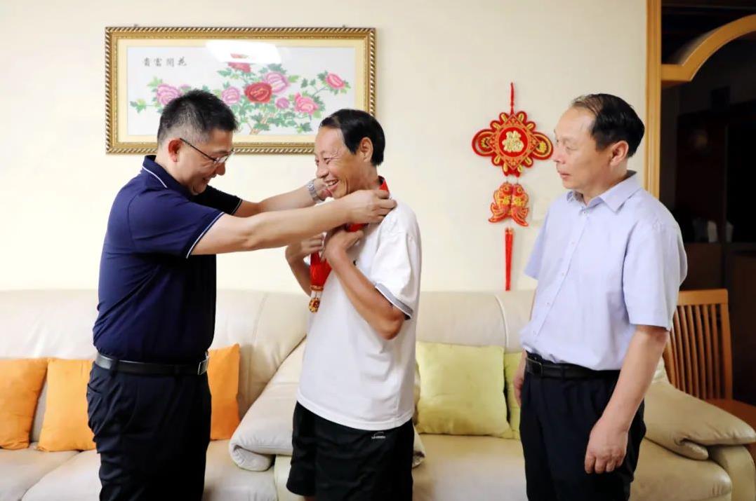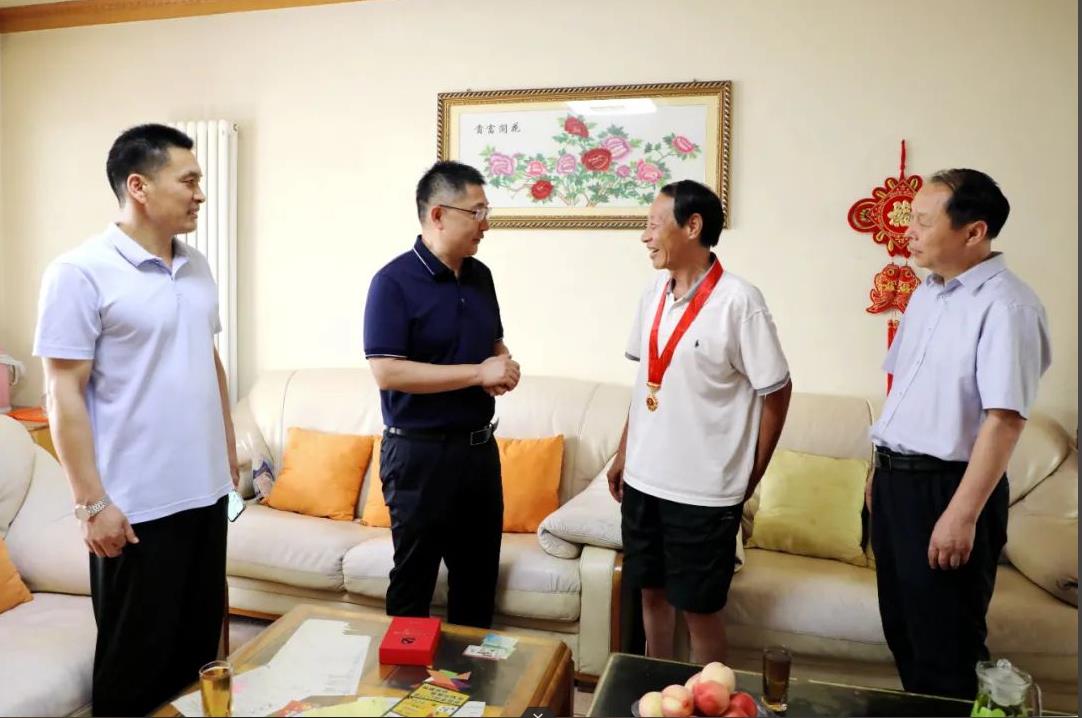 慰問過程中,王向良同志為謝學(xué)政同志戴上沉甸甸的紀(jì)念章,關(guān)切詢問謝學(xué)政同志及其家人的生活和身體狀況。孟德陽同志受院黨委的委托,向謝學(xué)政同志為醫(yī)院的發(fā)展所做出的辛勤付出、無私奉獻(xiàn)表達(dá)了衷心感謝,叮囑他保重身體,今后有什么困難要及時(shí)告知醫(yī)院,醫(yī)院是他永遠(yuǎn)的后盾,并希望他一如既往地關(guān)心醫(yī)院工作,為醫(yī)院高質(zhì)量發(fā)展積極建言獻(xiàn)策。