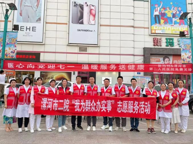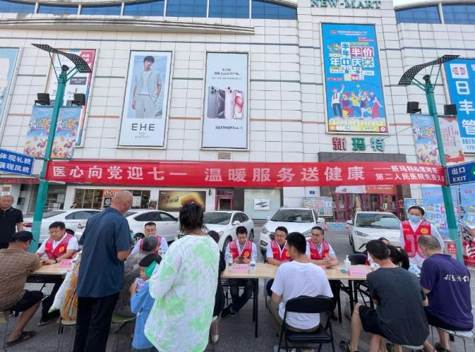 為慶祝中國共產(chǎn)黨成立103周年,充分發(fā)揮黨員干部服務(wù)群眾先鋒模范作用,讓百姓在家門口就能享受到優(yōu)質(zhì)、便捷、高效的診療服務(wù),6 月26日,市二院專家志愿者團(tuán)隊在新瑪特廣場前開展“醫(yī)”心向黨迎七一 溫暖服務(wù)送健康主題義診宣傳活動,為社區(qū)居民送上健康,帶去關(guān)愛。