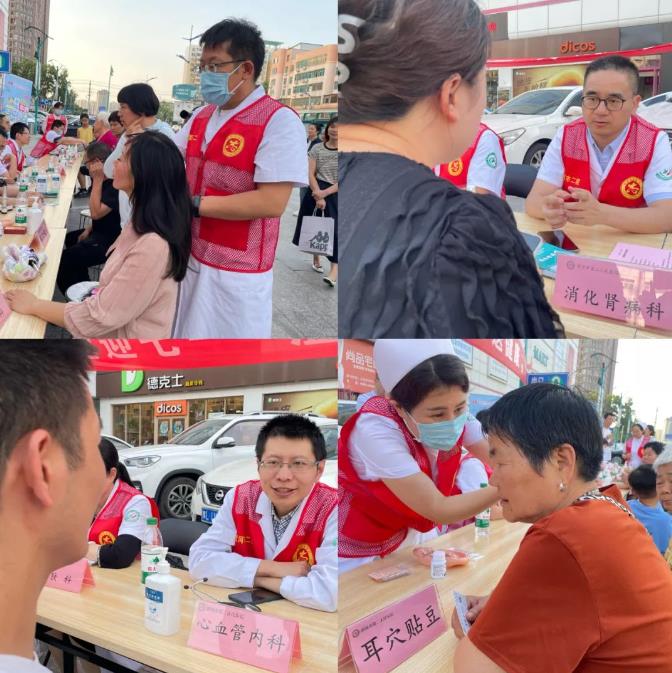 現(xiàn)場氣氛熱烈,前來咨詢和問診的社區(qū)居民及路人絡(luò)繹不絕,市二院放療科、康復(fù)科、老年醫(yī)學(xué)科、心內(nèi)科、皮膚科、眼科、消化腎病科等20余名黨員志愿者們?yōu)榫用駛兲峁┟赓M測血壓、測血糖及健康咨詢;對他們提出的疑問進(jìn)行耐心解答,并詳細(xì)詢問其身體狀況和既往病史,科普相關(guān)知識,積極引導(dǎo)大家科學(xué)就醫(yī)、合理用藥,宣傳倡導(dǎo)健康生活方式,增強(qiáng)自我保健意識。