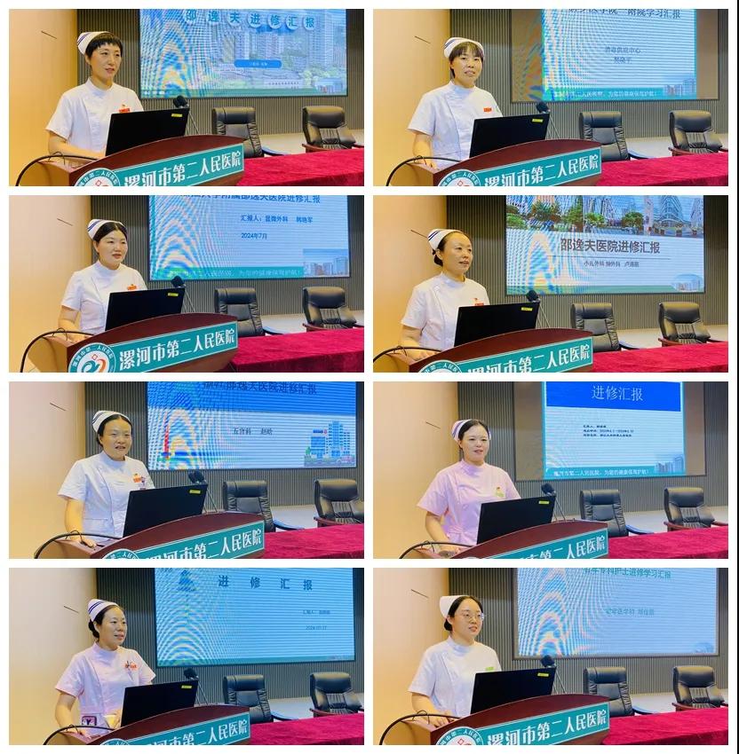 匯報會上,12名進(jìn)修護(hù)士分別從不同專業(yè)領(lǐng)域,將自己外出學(xué)習(xí)的所見所聞、所思所想等用精彩的圖文,以PPT的形式展示了所進(jìn)修醫(yī)院的專業(yè)技術(shù)、管理模式、護(hù)理理念、人性化護(hù)理服務(wù)、??谱o(hù)理特點等,并結(jié)合各自的專業(yè)特點和學(xué)習(xí)方向,自己??平ㄔO(shè)、護(hù)理文化、管理理念、先進(jìn)技術(shù)、工作流程、服務(wù)細(xì)節(jié)、學(xué)習(xí)感悟等方面進(jìn)行多角度、全方位的展示。同時將自身所學(xué)與工作實際相結(jié)合,制定了下一步工作改進(jìn)方案,達(dá)到了“一人學(xué)習(xí)、全院共享、共同進(jìn)步”的目的。本次匯報既是進(jìn)修成效的分享交流,更是一次思維的碰撞、??频慕涣?、理念的創(chuàng)新。