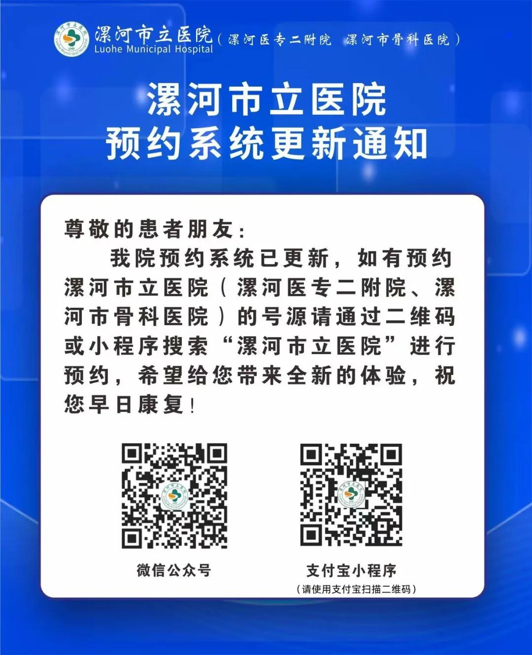 漯河市立醫(yī)院預約系統(tǒng)更新通知