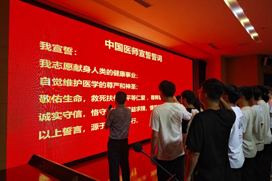 全科基地主任劉國(guó)鋒帶領(lǐng)全體學(xué)員進(jìn)行了莊嚴(yán)宣誓,《中國(guó)醫(yī)師誓言》的錚錚誓詞響徹會(huì)議室上空,回蕩在每個(gè)師生心間,師生在此經(jīng)歷了一次職業(yè)教育洗禮。