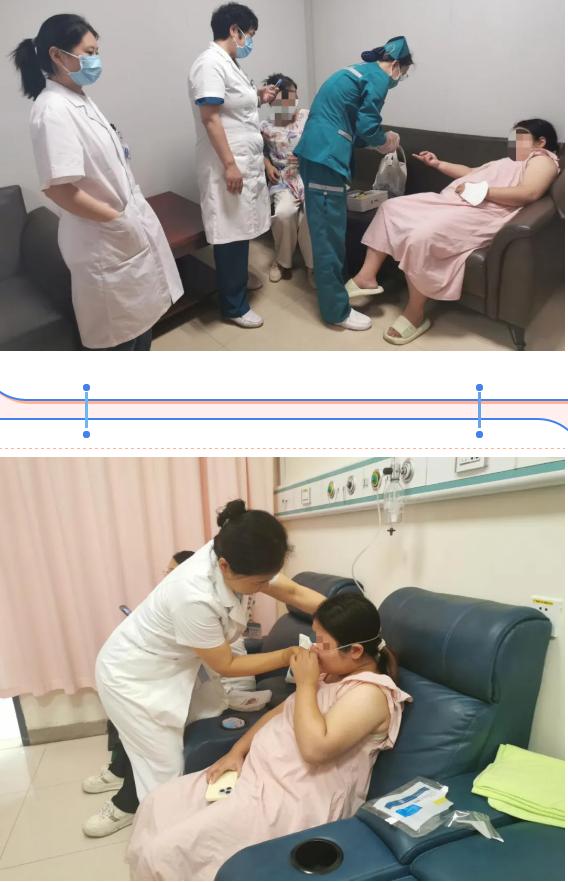 1分鐘后,婦產(chǎn)科張秀麗醫(yī)生迅速來到檢驗科,2分鐘后,急診科的李想醫(yī)生、王靜護(hù)士推著平車,帶著急救設(shè)備也來到檢驗科。他們爭分奪秒,分工合作,婦產(chǎn)科醫(yī)生查看孕婦及胎兒基本情況,急診科醫(yī)生、護(hù)士立即測量手指血糖、血壓等操作。隨后,大家快速的把患者轉(zhuǎn)移到婦產(chǎn)科門診胎心監(jiān)護(hù)室,立即進(jìn)行吸氧、胎心監(jiān)護(hù)等操作。