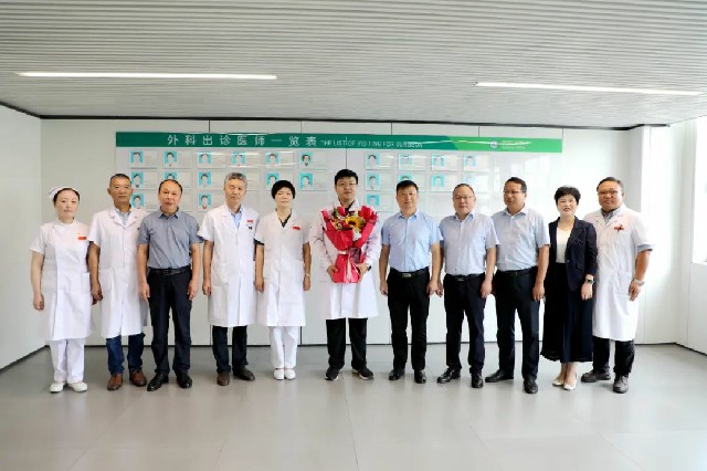 黨委書記魏松、院長王瑾及其他領(lǐng)導(dǎo)班子成員還特別前去看望了醫(yī)師節(jié)前來坐診的鄭大一附院乳腺外科王新星教授和因病住院的市二院普外科主任何德山,向他們送去了節(jié)日的祝福。