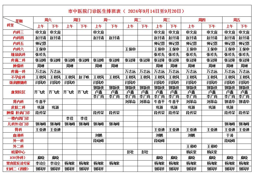 漯河市中醫(yī)院門診醫(yī)生排班表