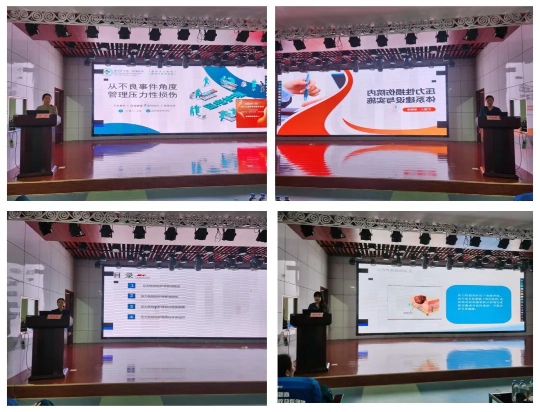 近年來,壓力性損傷管理已成為醫(yī)院的管理重點(diǎn)以及評價(jià)護(hù)理質(zhì)量的重要監(jiān)測指標(biāo)。授課中,李艷華老師將理論知識與實(shí)際案例相結(jié)合,重點(diǎn)闡述了4期壓力性壓力性損傷診療過程、護(hù)理步驟,同時(shí)強(qiáng)調(diào)我們不但要會(huì)識別、處理創(chuàng)面,還要會(huì)記錄,以方便其他同事學(xué)習(xí)。張藝萍老師針對一期壓紅、二期水泡、三期淺潰瘍、四期深潰瘍、不可分期的全層皮膚和組織缺失及深部組織損傷期護(hù)理進(jìn)行重點(diǎn)講解,強(qiáng)調(diào)了壓力性損傷重在預(yù)防。