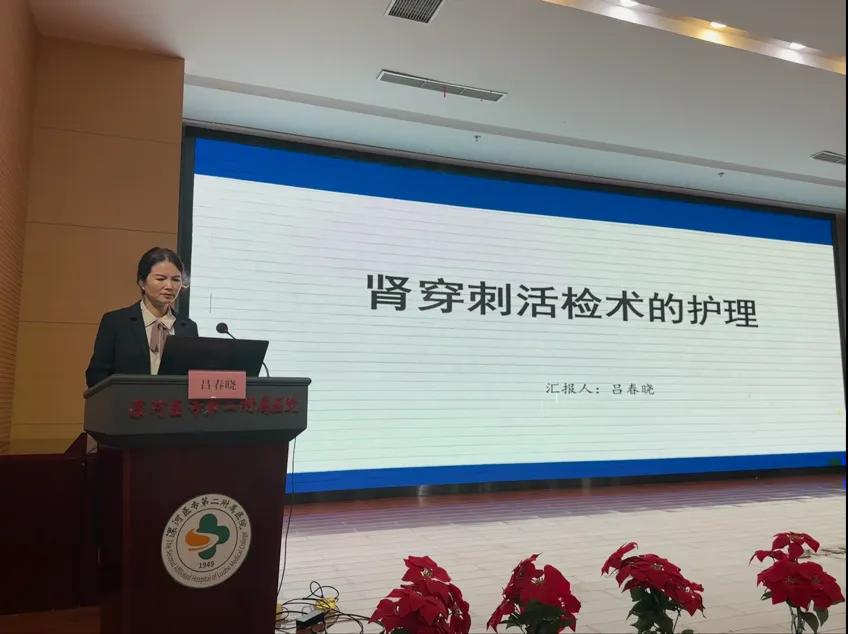 腎穿刺活檢術(shù)是腎臟病病理診斷的唯一方法,有助于進(jìn)一步了解疾病的發(fā)生、發(fā)展及轉(zhuǎn)歸,血液凈化室護(hù)士長呂春曉以《腎穿刺活檢術(shù)的護(hù)理》為題,針對(duì)腎穿活檢術(shù)的目的、適應(yīng)癥、禁忌癥、術(shù)前、術(shù)中、術(shù)后護(hù)理及并發(fā)癥的觀察進(jìn)行講解。內(nèi)容貼近臨床,為臨床護(hù)理工作指明了方向。
