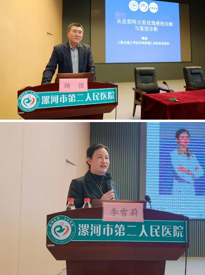 會議特邀上海交通大學(xué)醫(yī)學(xué)院附屬仁濟(jì)醫(yī)院皮膚科主任鞠強教授、鄭州大學(xué)第一附屬醫(yī)院皮膚科主任尹光文教授、河南省人民醫(yī)院皮膚科主任李雪莉教授蒞臨授課。市二院黨委書記魏松、副院長張曉東和全市及周邊相關(guān)專業(yè)醫(yī)務(wù)人員200余人參會。會議由副院長張曉東主持。