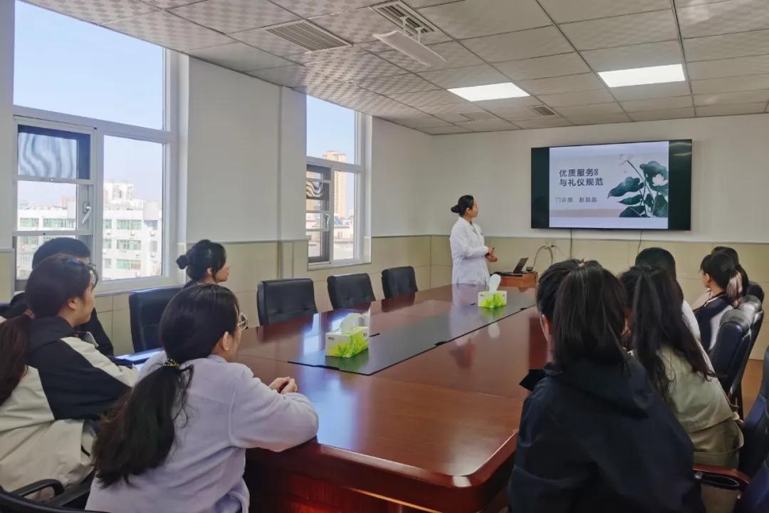 趙晶晶護(hù)士長(zhǎng)對(duì)見(jiàn)習(xí)人員進(jìn)行《優(yōu)質(zhì)服務(wù)和禮儀規(guī)范》的培訓(xùn),提升見(jiàn)習(xí)人員的形象素質(zhì)。