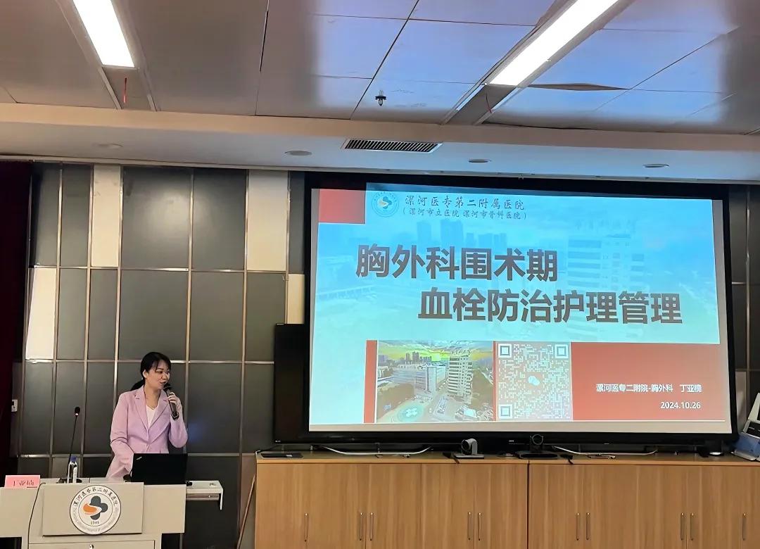 丁亞楠護(hù)士長(zhǎng)以《胸外科圍術(shù)期血栓防治護(hù)理管理》為題,講述胸外科血栓防治護(hù)理管理是確保患者圍術(shù)期安全的重要環(huán)節(jié),需要貫穿患者術(shù)前、術(shù)中、術(shù)后及出院后的全過(guò)程,通過(guò)全面的評(píng)估、個(gè)性化的預(yù)防措施、密切的病情觀察和有效的抗凝治療手段,降低血栓形成的風(fēng)險(xiǎn),確?;颊叩陌踩?。醫(yī)護(hù)不分家,醫(yī)療團(tuán)隊(duì)及護(hù)理團(tuán)隊(duì)的共同發(fā)展才能促進(jìn)專(zhuān)科建設(shè)的發(fā)展,丁亞楠護(hù)士長(zhǎng)促使胸外護(hù)理團(tuán)隊(duì)的專(zhuān)科建設(shè),對(duì)VTE的防治管理規(guī)范管理,為胸外的發(fā)展提供助力。