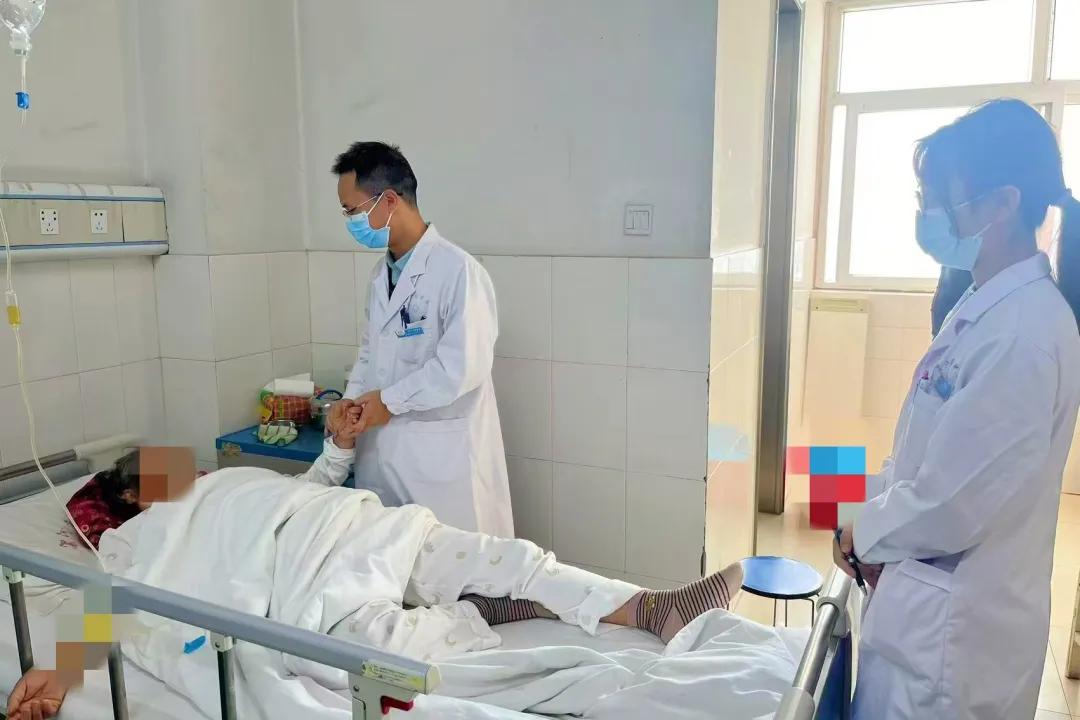 圖片術(shù)后孫亞中醫(yī)生為患者診脈并查看腿部血運(yùn)情況
