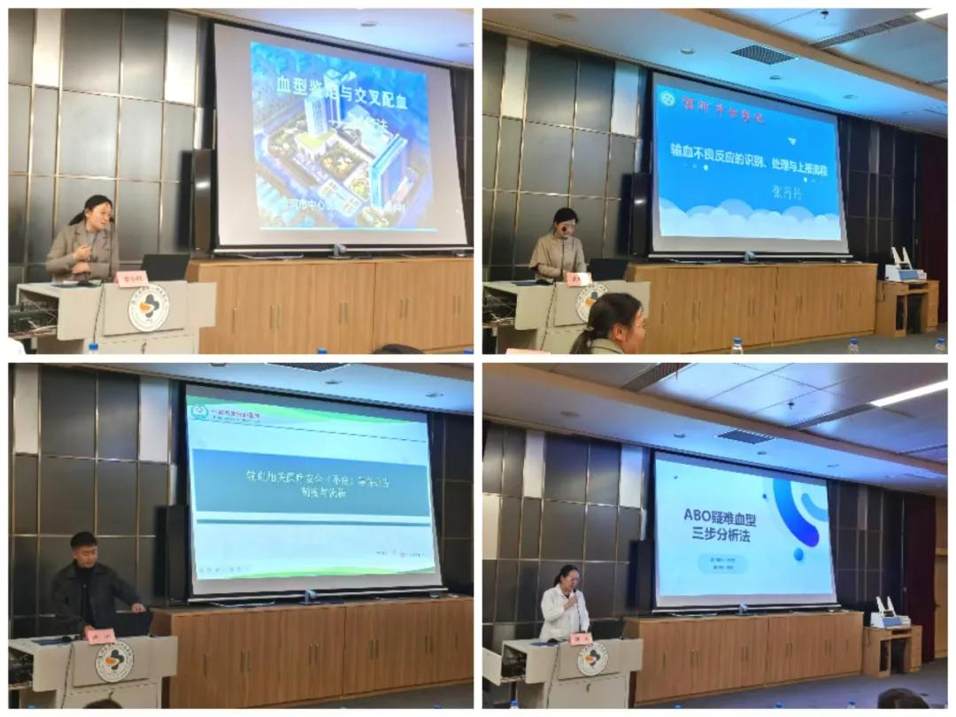 第二部分是專題培訓(xùn)會(huì),首先由漯河市中心醫(yī)院賈小村老師為大家分享了《血型鑒定與交叉配血》,其次,由漯河市中醫(yī)院張丹丹老師為大家?guī)?lái)《輸血不良反應(yīng)的識(shí)別、處理與上報(bào)》,緊接著,臨潁縣人民醫(yī)院陳陽(yáng)主任給大家匯報(bào)了《輸血相關(guān)不良事件的報(bào)告》,最后,漯河醫(yī)專二附院劉歡老師給大家?guī)?lái)了《ABO疑難血型三步分析法》。這些老師從實(shí)際工作出發(fā),具體分析了輸血工作中可能遇到的問(wèn)題及注意事項(xiàng),無(wú)私分享了寶貴的工作經(jīng)驗(yàn),會(huì)議在掌聲中圓滿結(jié)束。