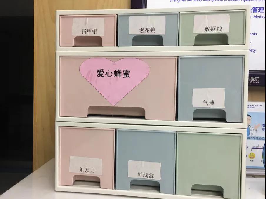 在工作中,經(jīng)常有患者或家屬因緊急住院,未準(zhǔn)備水杯、牙刷、牙膏、紙巾、手機(jī)充電線等日常用品,而向我們尋求幫助,這些住院患者日常生活中的不便之處,醫(yī)護(hù)人員都看在眼里,記在心上。鑒于原有的便民箱物品已經(jīng)不能完全滿足患者的需求,科室護(hù)士長組織對全科醫(yī)護(hù)人員、患者及家屬進(jìn)行調(diào)研,收集建議并增加了患者使用頻率高的物品,方便患者根據(jù)自己的需求借用,解決患者和家屬的燃眉之急,為患者提供更加溫馨、舒適的住院環(huán)境。