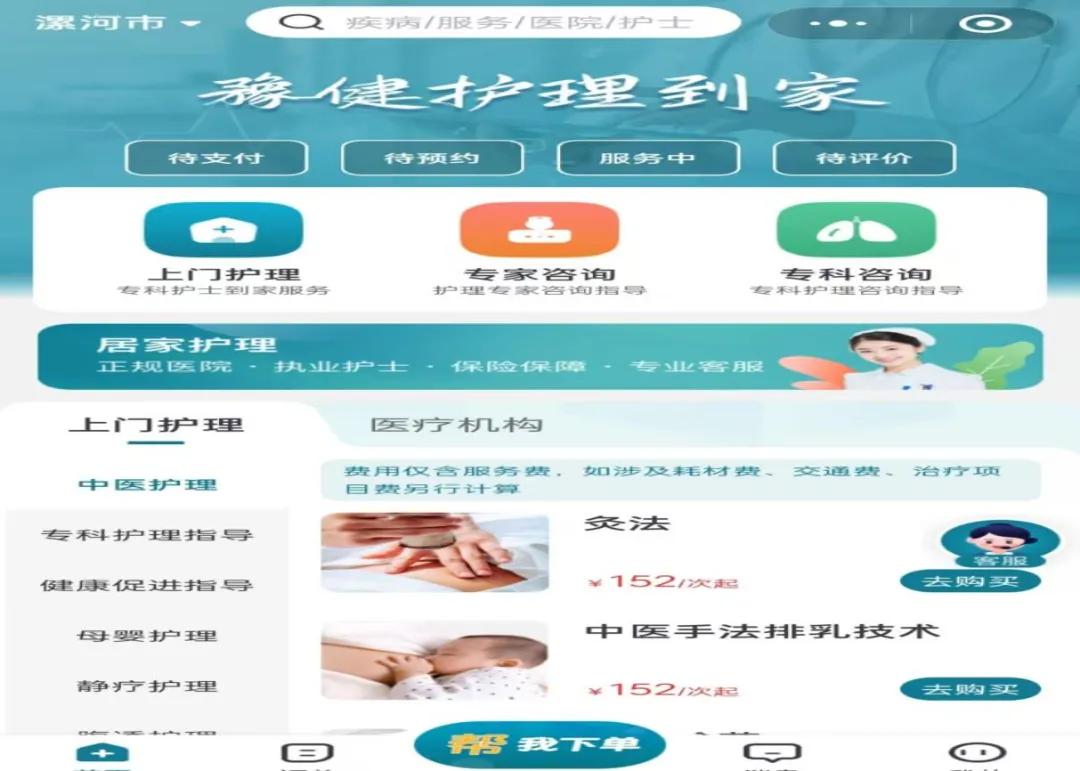 在醫(yī)院公眾號內(nèi)輕松一點,即可進入預約界面。選擇您需要的服務項目,填寫相關信息,剩下的就交給我們!專業(yè)的護士將根據(jù)您的需求和時間安排,準時上門提供服務。整個過程簡單快捷,讓您無需再為排隊掛號、路途奔波而煩惱。