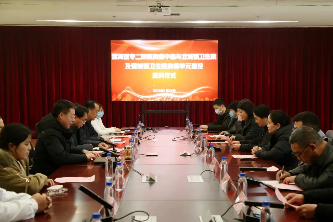 隨后,在與會(huì)人員的共同見證下,漯河醫(yī)專二附院院長(zhǎng)王齊超分別與龍城鎮(zhèn)衛(wèi)生院院長(zhǎng)葛雙云、裴城鎮(zhèn)衛(wèi)生院院長(zhǎng)王群峰正式簽署了合作協(xié)議。