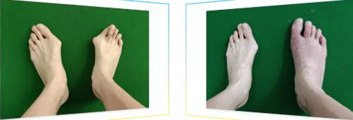 患者今年39歲,10年前發(fā)現(xiàn)雙足踇趾向外偏,1年前自覺(jué)畸形加重,活動(dòng)后關(guān)節(jié)紅腫疼痛明顯,休息后緩解,活動(dòng)后再次加重,病情反復(fù)并逐漸加重。