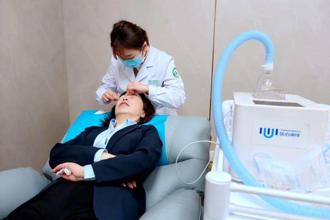 在超聲霧化熏蒸后,通過瞼板腺按摩疏通堵塞的瞼板腺,促進瞼脂排出,改善瞼板腺功能,緩解干眼癥狀。
