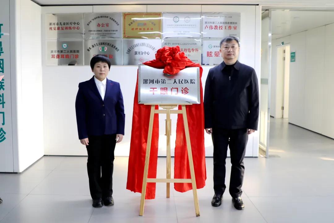 儀式現(xiàn)場,黨委書記魏松與院長胡海英共同為“漯河市第二人民醫(yī)院干眼門診”揭牌。