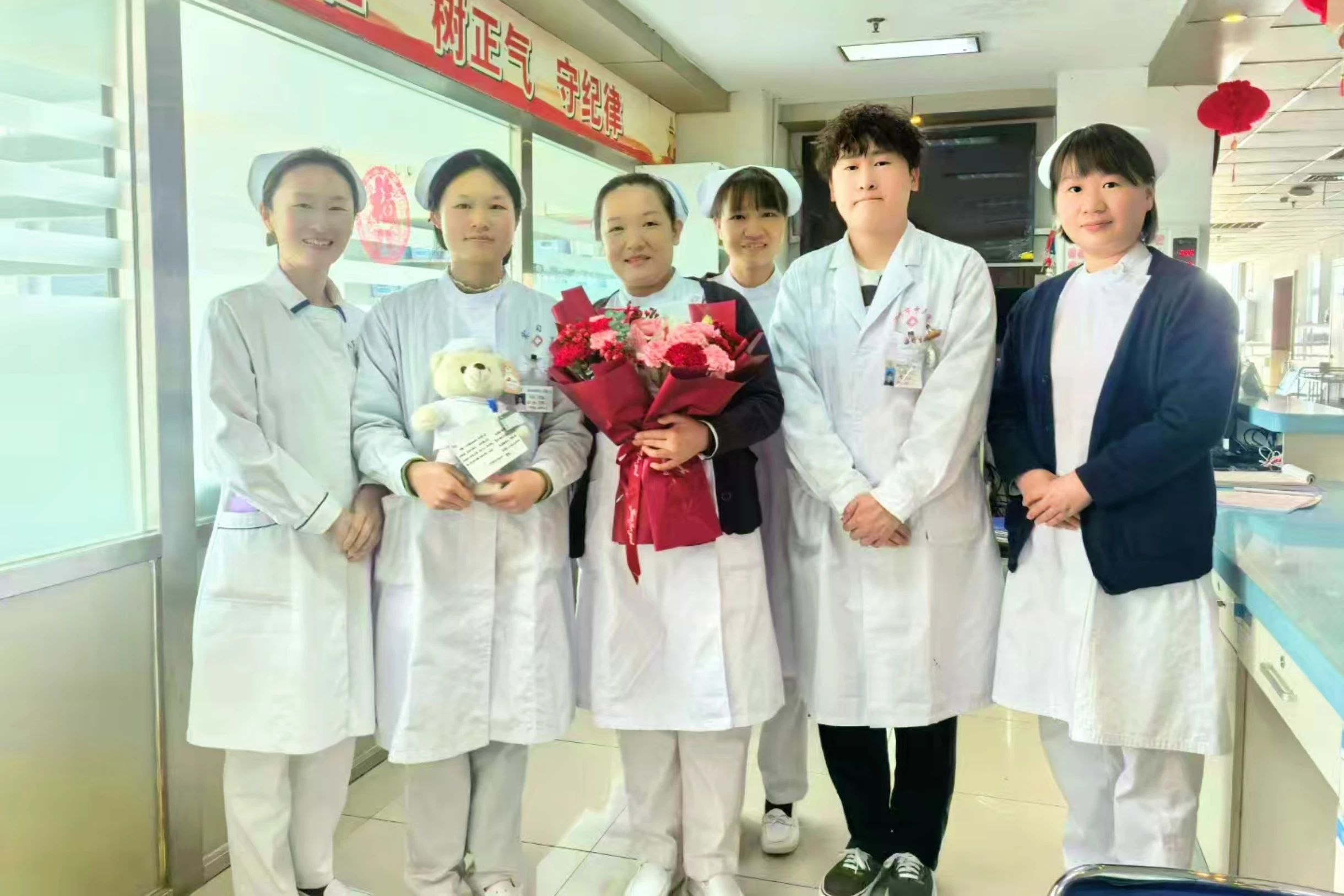 開展歡送會的還有肛腸科等科室??剖覟橥瑢W們送上精心準備的禮物和真摯的祝福。同學們也通過贈送鮮花,向辛勤的老師表達了深深的感激之情。