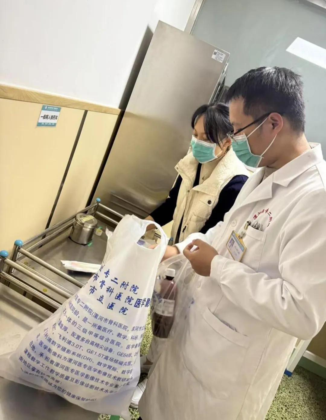 陳笑寒耐心地安撫家屬的情緒,同時迅速指導他們在豫健護理到家平臺上進行下單。訂單一經接收,在閆衛(wèi)甫主任的全力支持下,她與醫(yī)生劉明啟迅速響應,僅用數(shù)分鐘便仔細核對并打包了所有必需品。盡管一天的勞累尚未消散,他們還是不顧疲憊,迎著暮色急忙趕往患者家中。