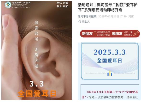 “線上+線下”齊頭并進(jìn)是系列活動的特色。充分利用醫(yī)院官方網(wǎng)站、微信公眾號、微博等新媒體平臺,發(fā)布愛耳日相關(guān)宣傳內(nèi)容,包括科普文章、海報、視頻等,以圖文并茂、生動有趣的形式向廣大市民普及聽力健康知識。同時,線上聽力健康知識問答、線上義診咨詢等線上互動活動,吸引了眾多市民參與,營造了愛耳護(hù)耳的濃厚氛圍。