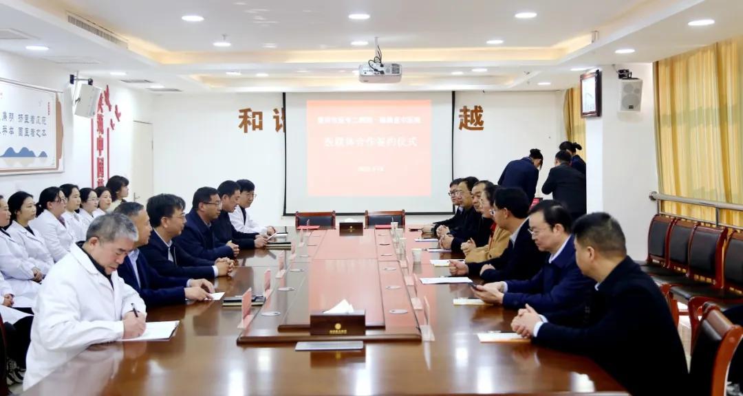漯河醫(yī)專二附院黨委書(shū)記柴運(yùn)洪與臨潁縣中醫(yī)院黨委書(shū)記田學(xué)民分別代表雙方簽訂合作協(xié)議。