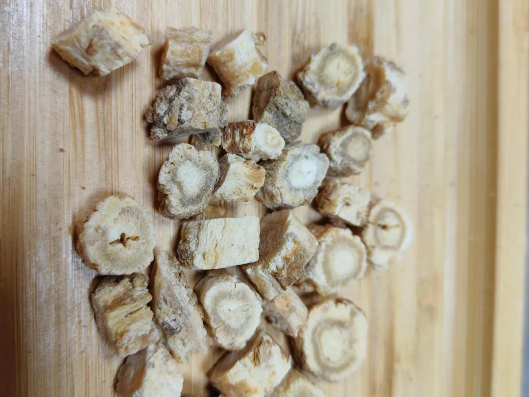 北沙參為傘形科的植物珊瑚菜的干燥根,夏、秋兩季采挖,除去須根,洗凈,置沸水中燙后,除去外皮,干燥或洗凈后直接干燥。本品氣特異,味微甘,以根條粗細(xì)均勻,質(zhì)地堅實,去凈栓皮,色黃白者為佳,切段生用。藥性甘,微苦、微寒,歸肺、胃經(jīng)。具有養(yǎng)陰清肺、益胃生津的功效。可用于治療肺熱燥咳,陰虛勞嗽痰血。本品甘潤,微苦微寒,能夠補肺陰,兼能夠清肺熱,用于陰虛肺燥有痰有熱之干咳少痰、久咳勞嗽或咽干音啞等癥,常與麥冬、玉竹、桑葉等配伍,如沙參麥冬湯(《溫病條辨》);治陰虛勞熱,咳嗽咳血,可與知母、川貝母、麥冬、鱉甲等同用。還可用于胃陰不足,熱病津傷,咽干口渴,本品甘寒能養(yǎng)胃陰,苦寒能清胃熱,常用于胃陰虛有熱之口干多飲、饑不欲食、大便干結(jié)、舌苔光剝或舌紅少津,或胃脘隱痛、干嘔、嘈雜,或熱病津傷,咽干口渴,常與石斛、玉竹、烏梅等養(yǎng)陰生津之品同用。胃陰脾氣俱虛者,宜與山藥、太子參、黃精等養(yǎng)陰、益氣健脾之品同用。煎服常用量為5~12g,不宜與藜蘆通用。
