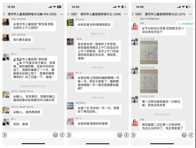 科室建立了咳嗽哮喘微信群,每個群配備有兩名醫(yī)生和一名哮喘??谱o(hù)士,針對有疑問的家長,我們直接線上解答,減少就診奔波。此外,科室還定期在微信群內(nèi)發(fā)布哮喘相關(guān)的健康資訊,包括季節(jié)性哮喘預(yù)防小貼士、飲食調(diào)理建議等,幫助家長更好地管理孩子的哮喘狀況。