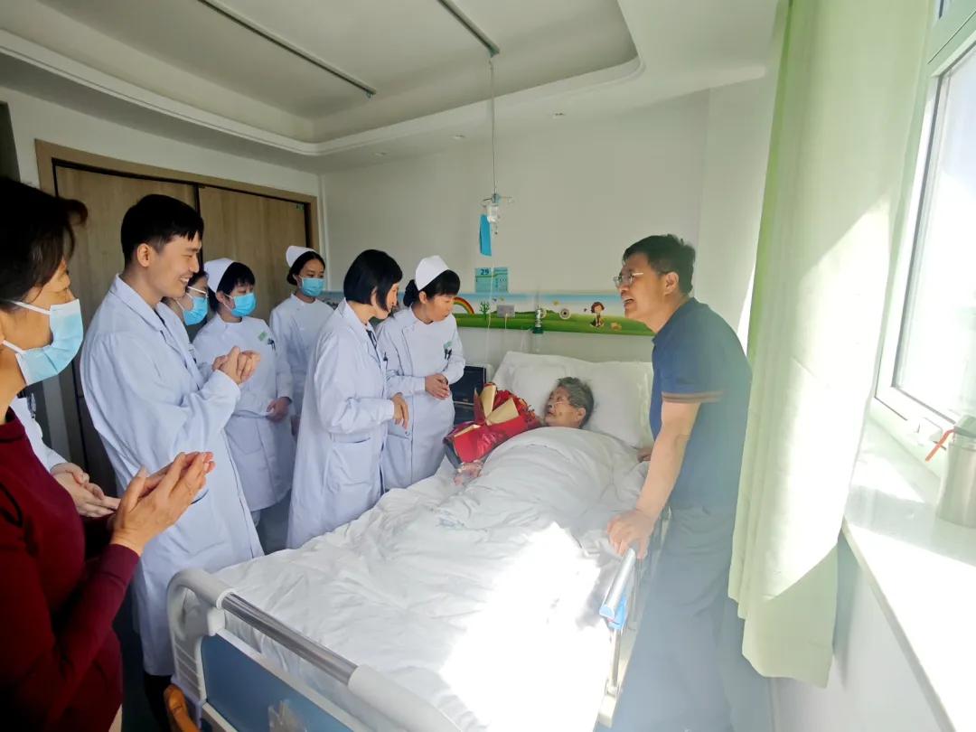 在市二院醫(yī)療救治的第一線,不僅有嚴(yán)謹(jǐn)專業(yè)的診療,更有溫暖真摯的關(guān)懷。4月13日上午,市二院呼吸與內(nèi)分泌科病房里傳來陣陣歡聲笑語,科室醫(yī)護(hù)人員為90歲的秦阿姨精心準(zhǔn)備了一場生日會,用愛與陪伴為老人送上最特別的祝福。