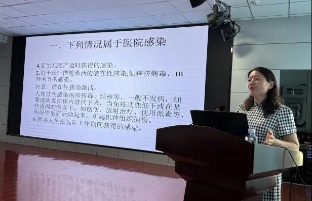授課現(xiàn)場(chǎng),感控科主任楚巧紅以《醫(yī)院感染診斷標(biāo)準(zhǔn)與案例分析》為題為近百名醫(yī)務(wù)人員進(jìn)行分享。楚巧紅主任結(jié)合多年臨床經(jīng)驗(yàn),以通俗易懂的語(yǔ)言、生動(dòng)的案例,圍繞感染分類、感染的診斷原則、各部位醫(yī)院感染診斷、常見的醫(yī)院感染部位、醫(yī)院肺炎(NP)流行病學(xué)等內(nèi)容展開講解。重點(diǎn)剖析了多重耐藥菌感染、呼吸機(jī)相關(guān)肺炎等疑難案例的診斷流程。隨后,參會(huì)人員圍繞內(nèi)容及實(shí)際臨床工作中遇到的實(shí)際問(wèn)題進(jìn)行提問(wèn),楚巧紅主任系統(tǒng)解答,反響熱烈。(盧 闖 韓書環(huán) 劉 旭 袁錦鈺)