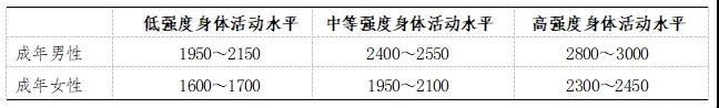 表 1 中國居民成人膳食能量需要量(單位:kcal/d)