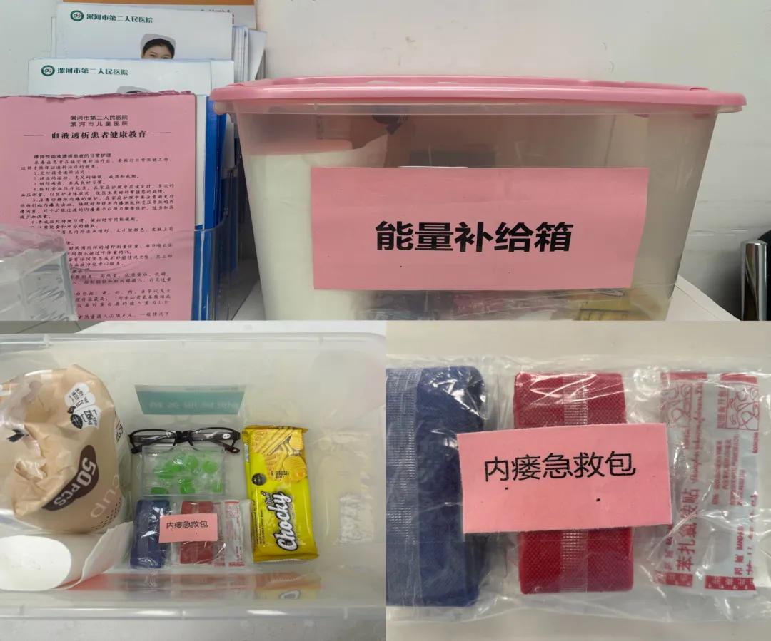 科室始終將患者的需求放在首位,設(shè)置了便民服務(wù)箱及能量補(bǔ)給箱以解燃眉之急,自備糖果、餅干等小零食,為患者提供能量補(bǔ)給。發(fā)放內(nèi)瘺急救包,便于患者回家路途中處理突發(fā)情況,提高了患者滿意度。