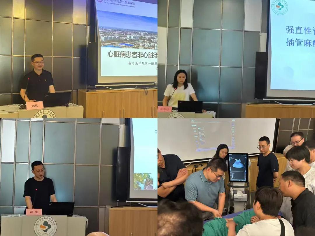 特殊患者麻醉管理質(zhì)控專題培訓會上新鄉(xiāng)醫(yī)學院第一附屬醫(yī)院麻醉與圍術(shù)期醫(yī)學科劉俊主任講解了《心臟病患者非心臟手術(shù)的麻醉管理》,漯河市骨科醫(yī)院麻醉科副主任醫(yī)師張秀珍分享了《強直性脊柱炎患者纖支鏡氣管插管麻醉管理》,漯河市中心醫(yī)院麻醉科崔魁主任以《冠心病患者的麻醉管理》為題講解了冠心病患者的麻醉管理要點,鄭州大學第一附屬醫(yī)院麻醉與圍術(shù)期醫(yī)學科葉皓天教授以現(xiàn)場授課結(jié)合實操的方式講授了《超聲引導下外周神經(jīng)阻滯》。