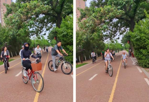 本次活動以“喜迎七一”為主題,將愛黨愛國教育、團隊建設(shè)與健康運動有機結(jié)合。青年朋友們精神飽滿地踏上單車,沿著精心規(guī)劃的騎行路線出發(fā)。騎行隊伍宛如一條流動的青春彩帶,穿梭于沙澧河畔的綠樹碧水之間。大家一路歡聲笑語,洋溢著青春的活力與朝氣,以實際行動踐行低碳環(huán)保理念,成為景區(qū)一道亮麗的風(fēng)景線。