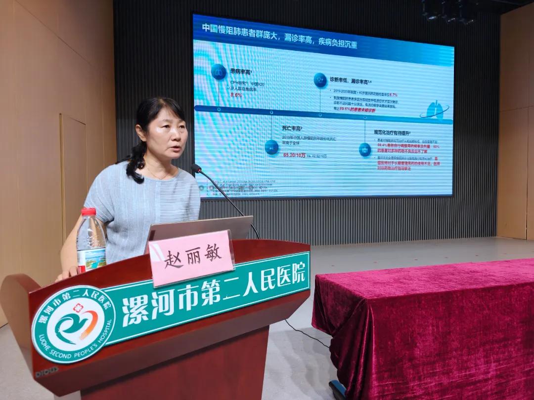 本次培訓(xùn)特邀中華醫(yī)學(xué)會呼吸病學(xué)專家,河南省人民醫(yī)院趙麗敏教授進行授課。趙麗敏教授以“雙支擴劑在慢性阻塞性肺疾?。–OPD)中的規(guī)范化診療”為題,結(jié)合河南省慢阻肺流行病學(xué)調(diào)查中的大數(shù)據(jù),系統(tǒng)闡述了慢阻肺的早期篩查、階梯化治療和長期管理策略,她著重指出:“基層醫(yī)療機構(gòu)是慢阻肺防控的第一道防線,推行肺功能檢查普及、建立患者分級隨訪體系是改善預(yù)后的關(guān)鍵。”并強調(diào)了“像測血壓一樣測肺功能”的早篩意識,真正實現(xiàn)“防重于治”的目標(biāo)。