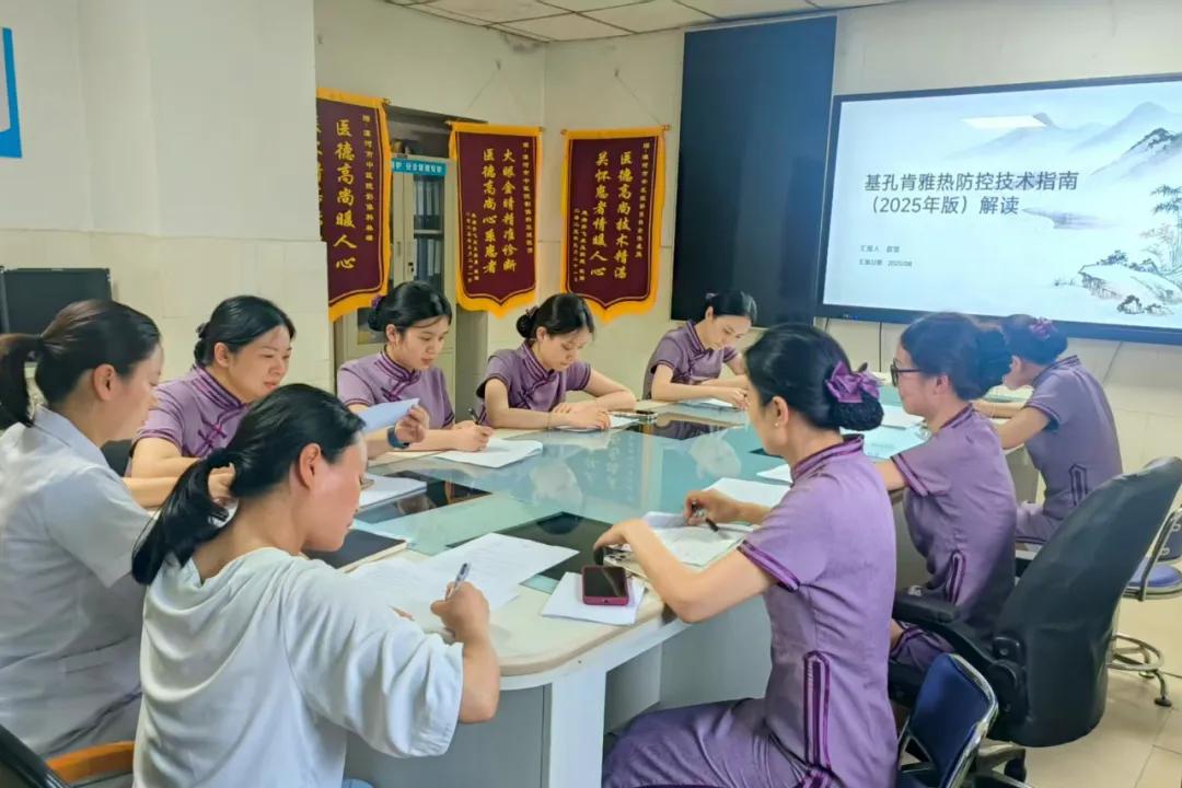 門診部護(hù)士長陳文競傳達(dá)了當(dāng)前基孔肯雅熱防控工作的重要性和緊迫性,指出這項工作對大家來說是一種新的挑戰(zhàn),但只要醫(yī)務(wù)人員掌握了正確的防治知識和技能,就能夠有效地預(yù)防和控制這一疾病的傳播,希望大家能夠認(rèn)真學(xué)習(xí)今天的內(nèi)容,并在實(shí)際工作中加以應(yīng)用。