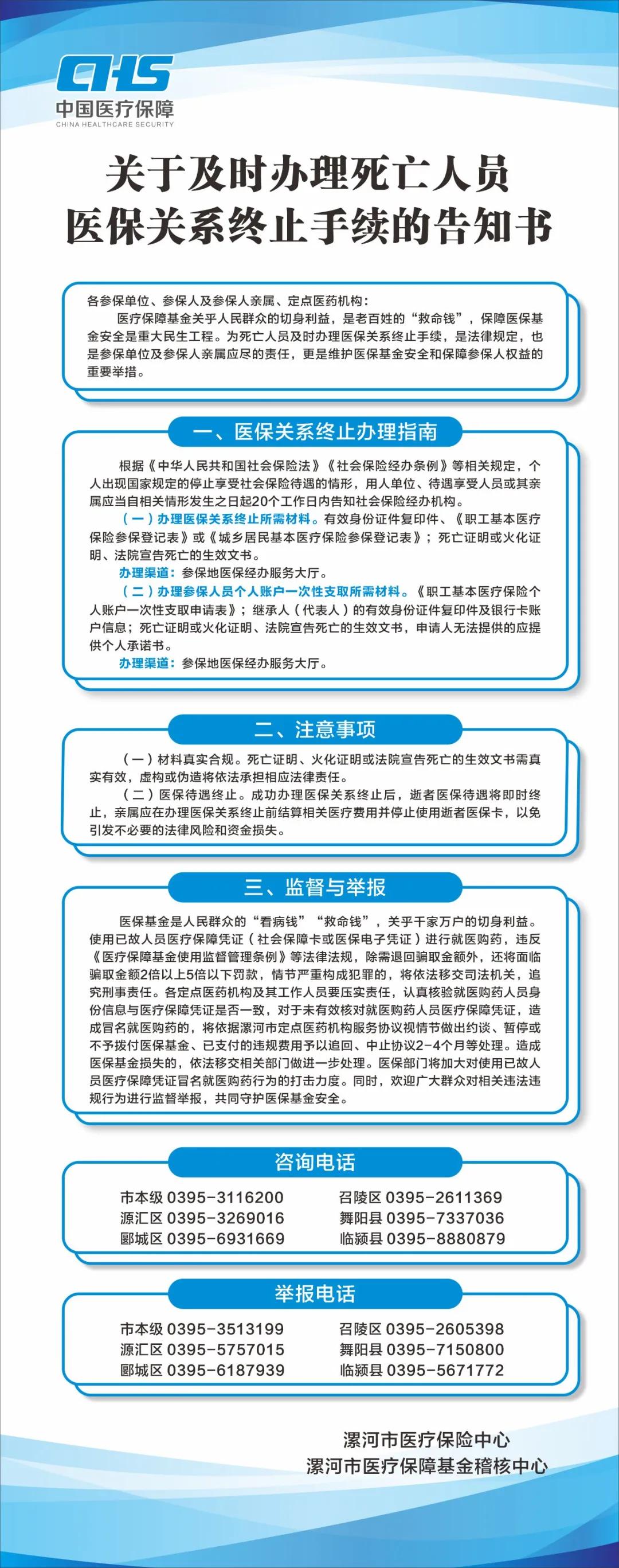 漯河市中醫(yī)院:關(guān)于及時(shí)辦理死亡人員醫(yī)保關(guān)系終止手續(xù)的告知書