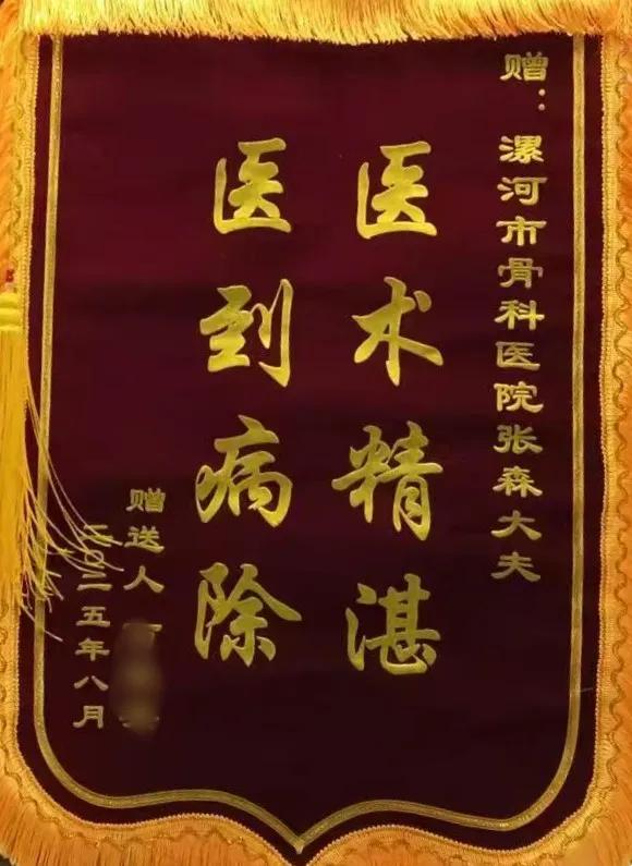近日,一面繡著“醫(yī)術(shù)精湛,醫(yī)到病除”的錦旗,帶著沉甸甸的感激,送到了漯河醫(yī)專二附院(漯河市骨科醫(yī)院、漯河市立醫(yī)院)康復科張森醫(yī)生手中。這不僅是患者對治療效果的肯定,更是對他所在團隊的專業(yè)能力與人文關(guān)懷的由衷贊譽。