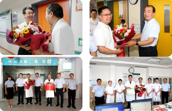 在第八個中國醫(yī)師節(jié)來臨之際,8月18日上午,漯河醫(yī)專二附院(漯河市骨科醫(yī)院、漯河市立醫(yī)院)領(lǐng)導(dǎo)班子走進臨床一線,將溫暖與敬意送到廣大醫(yī)師身邊,為他們送上節(jié)日的誠摯問候與崇高敬意。