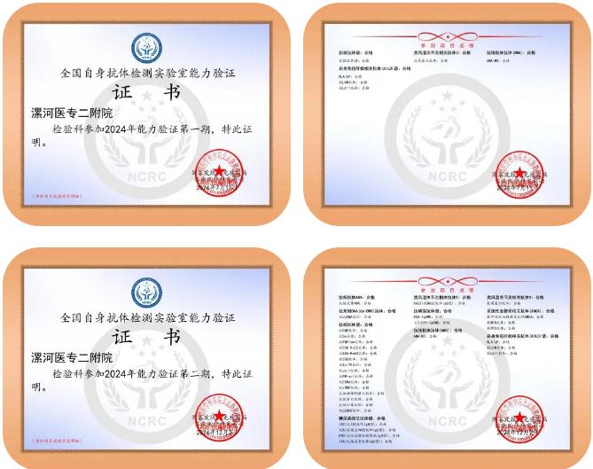 近日,漯河醫(yī)專二附院(漯河市骨科醫(yī)院、漯河市立醫(yī)院)檢驗(yàn)科自身免疫實(shí)驗(yàn)室在“國(guó)家皮膚與免疫疾病臨床醫(yī)學(xué)研究中心(NCRC)”組織的、北京協(xié)和醫(yī)院牽頭的全國(guó)自身抗體檢測(cè)實(shí)驗(yàn)室能力驗(yàn)證中,再次憑借卓越的檢測(cè)能力和穩(wěn)定的技術(shù)水平,斬獲合格證書。這已經(jīng)是自2023年以來,連續(xù)3年獲此殊榮,充分說明了醫(yī)院自身免疫實(shí)驗(yàn)室的檢測(cè)結(jié)果與全國(guó)251家實(shí)驗(yàn)室數(shù)據(jù)高度一致,達(dá)到國(guó)家級(jí)標(biāo)準(zhǔn)化水平,為臨床診斷提供了堅(jiān)實(shí)可靠的依據(jù)。