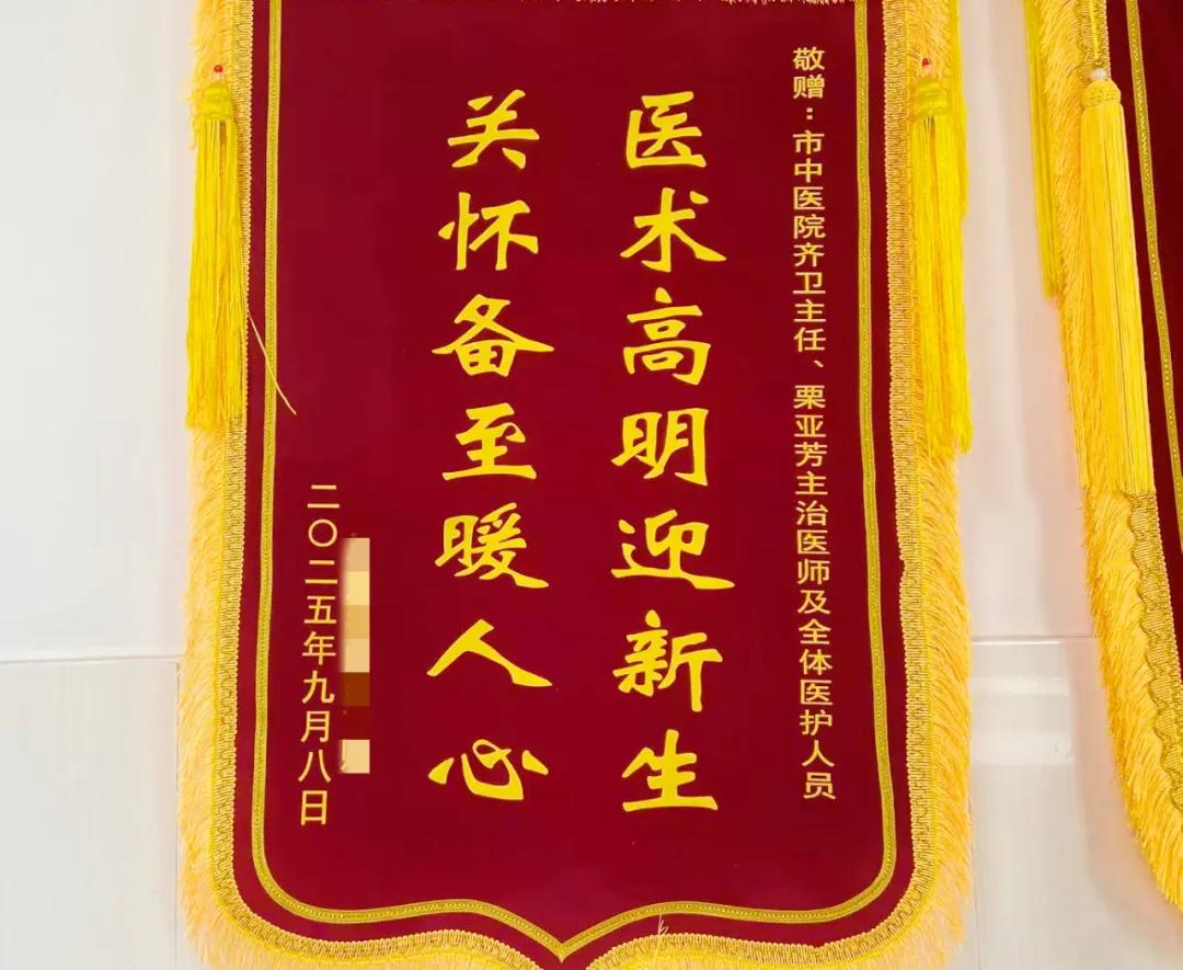 一面錦旗,贈(zèng)給婦產(chǎn)科主任齊衛(wèi)、主治醫(yī)師栗亞芳及婦產(chǎn)科團(tuán)隊(duì)。此前,產(chǎn)婦因超預(yù)產(chǎn)期且羊水過(guò)少,由栗亞芳醫(yī)生緊急收住入院。從接診起,栗醫(yī)生便持續(xù)給予產(chǎn)婦心理安撫,緩解產(chǎn)婦焦慮。入院后齊主任和栗醫(yī)生全面評(píng)估產(chǎn)婦的綜合情況決定為其終止妊娠。產(chǎn)婦發(fā)動(dòng)宮縮后,栗醫(yī)生全程陪同產(chǎn)程,指導(dǎo)用力技巧,助力其順利陰道分娩。因新生兒受羊水三度污染需轉(zhuǎn)兒科治療,栗醫(yī)生每日主動(dòng)對(duì)接兒科、反饋寶寶情況,同時(shí)指導(dǎo)產(chǎn)婦產(chǎn)后飲食、運(yùn)動(dòng)、排奶、暖心安撫產(chǎn)婦,現(xiàn)寶媽和寶寶恢復(fù)良好,產(chǎn)婦和家屬都很感激,特送錦旗表示感謝!