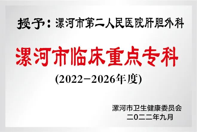 漯河市第二人民醫(yī)院普外科含肝膽外科、燒傷科、泌尿外科、微創(chuàng)外科、普外科。其中肝膽外科為漯河市醫(yī)學(xué)重點(diǎn)專科,擁有普通病床46張,重癥監(jiān)護(hù)病床5張,該科技術(shù)力量雄厚,現(xiàn)有主任醫(yī)師3人,副主任醫(yī)師2人,住院醫(yī)師3人,副主任護(hù)師1人,其中碩士研究生2名??剖蚁群髽s獲河南省衛(wèi)生廳科技成果獎(jiǎng)4項(xiàng),漯河市科技成果獎(jiǎng)30余項(xiàng),其中一等獎(jiǎng)8項(xiàng)。分別和火箭軍總醫(yī)院、上海東方肝膽外科醫(yī)院、河南省人民醫(yī)院肝膽外科等建立診療聯(lián)盟單位,定期邀請知名專家來院義診及手術(shù),能為漯河市及周邊地區(qū)的病人提供優(yōu)質(zhì)的醫(yī)療服務(wù)。