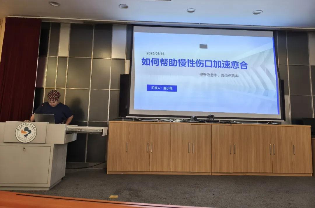 隨后,壓力性損傷/傷口護(hù)理學(xué)組學(xué)術(shù)調(diào)研組長(zhǎng)趙小艷老師圍繞《如何幫助慢性傷口加速愈合》展開(kāi)授課。她深入探討慢性傷口愈合延遲的常見(jiàn)誘因,如局部血運(yùn)、感染、營(yíng)養(yǎng)不良等,進(jìn)而系統(tǒng)闡述了個(gè)性化護(hù)理方案制定、傷口清創(chuàng)技巧、感染防控要點(diǎn),以及通過(guò)優(yōu)化局部環(huán)境、結(jié)合物理治療等促進(jìn)愈合的實(shí)用手段。豐富的內(nèi)容和實(shí)用的方法,為護(hù)理人員應(yīng)對(duì)慢性傷口難題提供了清晰思路與有效策略。