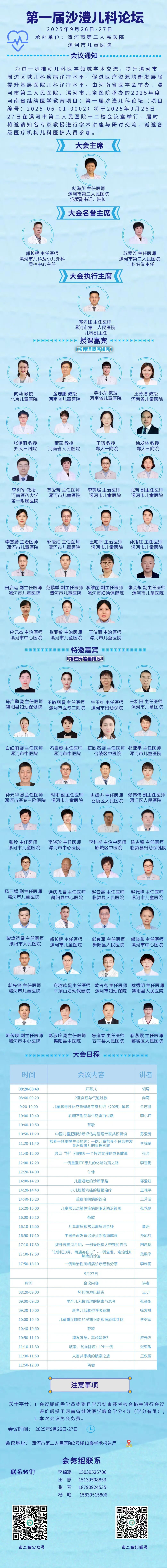為進(jìn)一步推動(dòng)兒科醫(yī)學(xué)領(lǐng)域?qū)W術(shù)交流,提升我市及周邊區(qū)域兒科疾病診療水平,促進(jìn)醫(yī)療資源均衡發(fā)展,提升基層醫(yī)院兒科診療水平。由河南省醫(yī)學(xué)會(huì)主辦,漯河市第二人民醫(yī)院、漯河市兒童醫(yī)院承辦的2025年度河南省繼續(xù)醫(yī)學(xué)教育項(xiàng)目:第1屆沙澧兒科論壇 (項(xiàng)目編號:2025-06-01-0002)學(xué)術(shù)會(huì)議將于2025年9月26-27日在漯河市第二人民醫(yī)院舉行,現(xiàn)將有關(guān)事項(xiàng)通知如下: